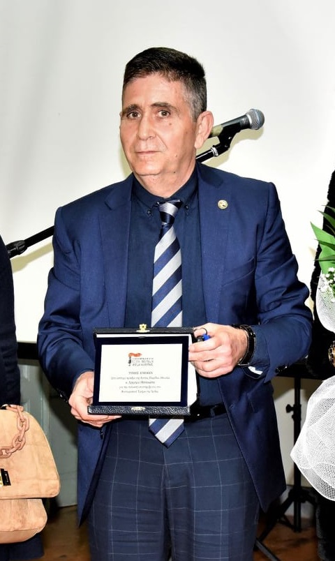 Εκτιμώντας και αναγνωρίζοντας το έργο και τη συμβολή του στην επιτυχή πορεία των πρωτοβουλιών του τμήματος φωτογραφίας «ΙΡΙΔΑ» της Εταιρείας Πιερικών Μελετών-Εστία Πιερίδων Μουσών Κατερίνης, με τη