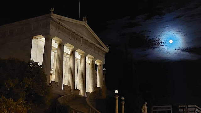 Πανσέληνος στην Ομόνοια, την Ακαδημία, τη Βουλή, το Σούνιο. Με το φακό του Βασίλη Κουτρουμάνου.