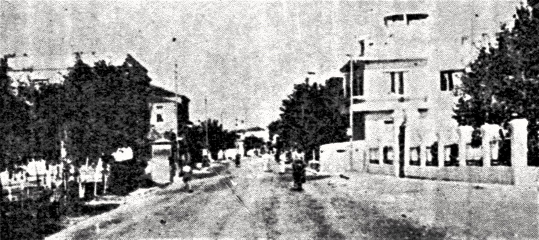 Δεξιά το κτίριο είναι η οικία Θεοδ. Χατζόγλου πρίν γίνει καπνεργοστάσιο ενώ πίσω από τον περίβολο με τις κολόνες είναι η αυλή της οικίας Αναγνώστου (παλαιό Δεσποτικό).