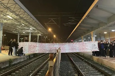 Φοιτητές της Ιατρικής Σχολής Λάρισας απέκλεισαν τις σιδηροδρομικές γραμμές μπροστά από τον Σταθμό του ΟΣΕ,